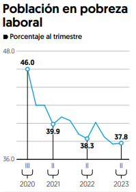La pobreza laboral en México se ubicó en 37.8 por ciento, su menor nivel en 11 años para un segundo