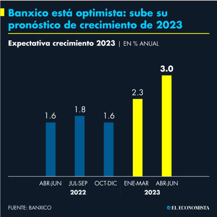 Sin embargo, es importante notar que este 3% es una cifra específica y el crecimiento real podría estar un poco por encima o por debajo de este número. Para reflejar esta incertidumbre, el Banxico establece un rango más amplio, estimando que al finalizar el año 2023, el crecimiento económico podría situarse entre el 2.5% y el 3.5%.